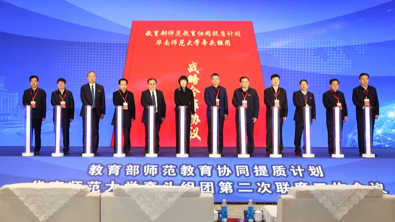 张志坚、陈向炜与组团高校代表、组团属地教育厅领导共同签署了“教育部师范教育协同提质计划华南师范大学牵头组团”战略合作协议。