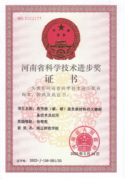近日,河南省人民政府公布了2022年度河南省科学技术奖励名单,mg4355官网化学化工学院魏伟博士主持完成的成果《高性能(碳、锗)基负极材料的关键制备技术及应用》获得科学技术进步奖三等奖。