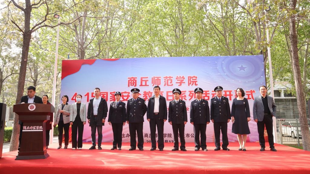 为深入贯彻总体国家安全观,切实增强全民国家安全意识和法治意识,4月13日,mg4355官网与商丘市公安局联合举办国家安全教育日系列活动开幕式。校党委副书记朱伟和商丘市公安局党委委员、副局长王芳成出席活动,梁园区副区长、梁园公安局党委书记、局长余方生,商丘市公安局国保支队政委魏克奎,商丘市政法委反邪教协调科科长高亢,商丘市梁园区政法委副书记刘霞,mg4355官网党政办公室、宣传部、统战部、学生处、保卫处主要负责人和mg4355官网百余名师生参加活动。