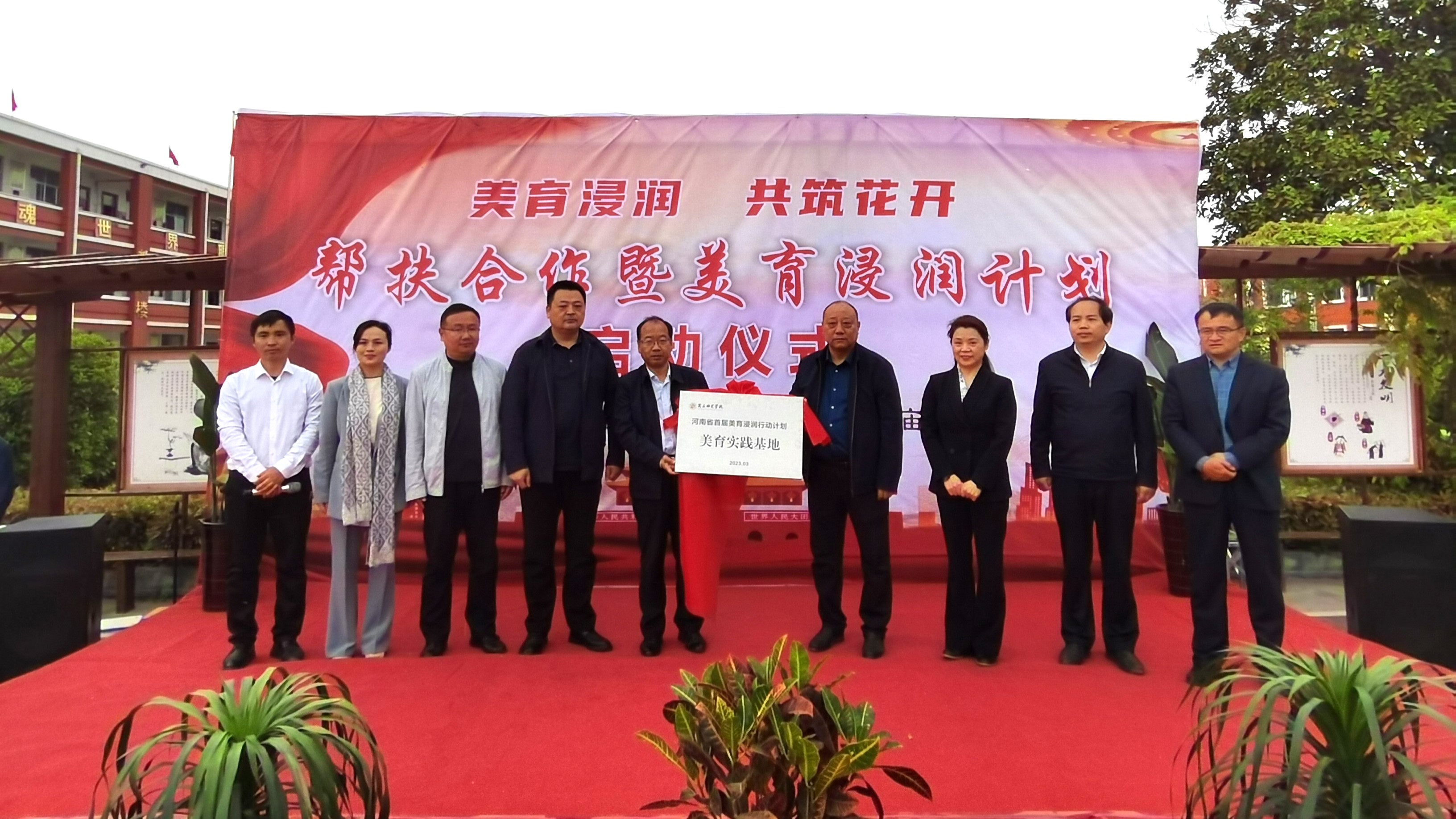 4月21日,mg4355官网作为入选河南省首批“美育浸润行动计划”高校到对口支持的柘城县惠济乡双庙小学,共同开启“美育浸润,共筑花开”活动启动仪式,并提供定向精准帮扶和志愿服务。副校长郭文佳,柘城县教育体育局党组书记、局长张军,,柘城县惠济乡党委书记吴昊,柘城县惠济乡中心学校校长谭继敏,柘城县惠济乡双庙小学校长王成磊及mg4355官网相关部门负责人出席活动,mg4355官网百余名师生参加活动。