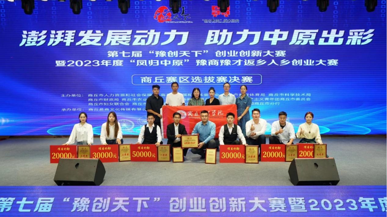 “豫创天下”创业创新大赛和“凤归中原”豫商豫才返乡入乡创业大赛是河南省人力资源和社会保障厅牵头打造的品牌赛事,是促进我市“双创”工作和返乡入乡创业高质量发展的重要举措,旨在选树一批典型、推介一批典型、培育一批典型、扶持一批典型。本次大赛以“澎湃发展动力 助力中原出彩”为主题,采取“1+1”模式,即1个“豫创天下”商丘赛区选拔赛加1个“凤归中原”商丘赛区选拔赛。其中“豫创天下”分制造业组、服务业组和青年双创组三个组别,分设一等奖1项,二等奖2项,三等奖3项,优秀奖4项。mg4355官网学子在青年双创组中获得一等奖1项、二等奖1项、优秀奖1项,在服务业组中获得二等奖1项、三等奖2项,充分发挥了mg4355官网在全市“双创”工作中的引领示范作用。