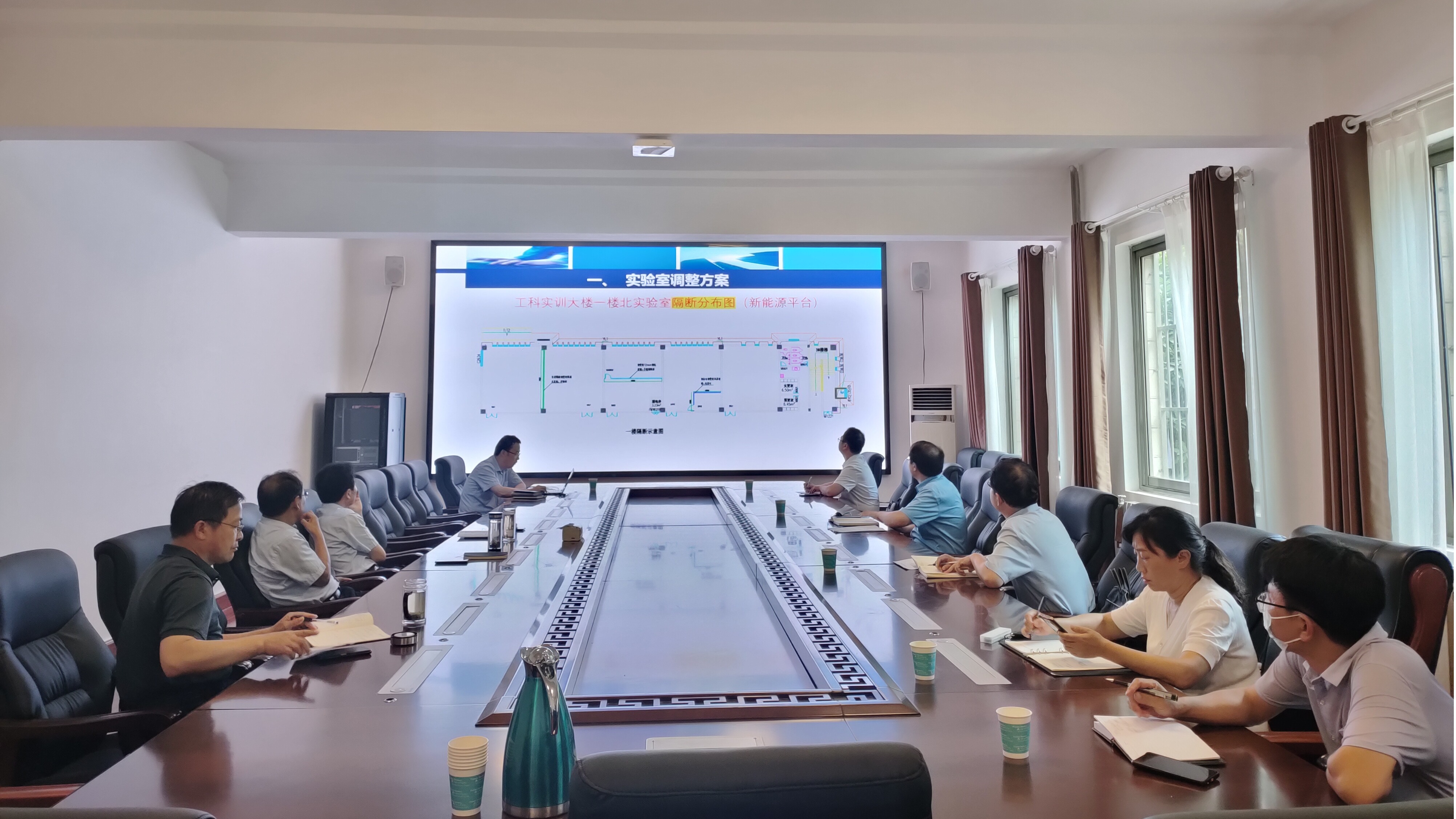 为了进一步推进化学化工学院在工科实训中心大楼的装修方案制定工作,2023年8月30日,在mg4355官网梁园校区归德楼102会议室召开了化学化工学院工科实训中心装修方案论证会,由实验室建设与管理中心牵头,财务处、审计处、基建处、国有资产处等部门负责人组成专家组,对装修方案进行细化讨论,校长陈向炜、副校长辛作义、郭文佳、程功鹏出席了会议。