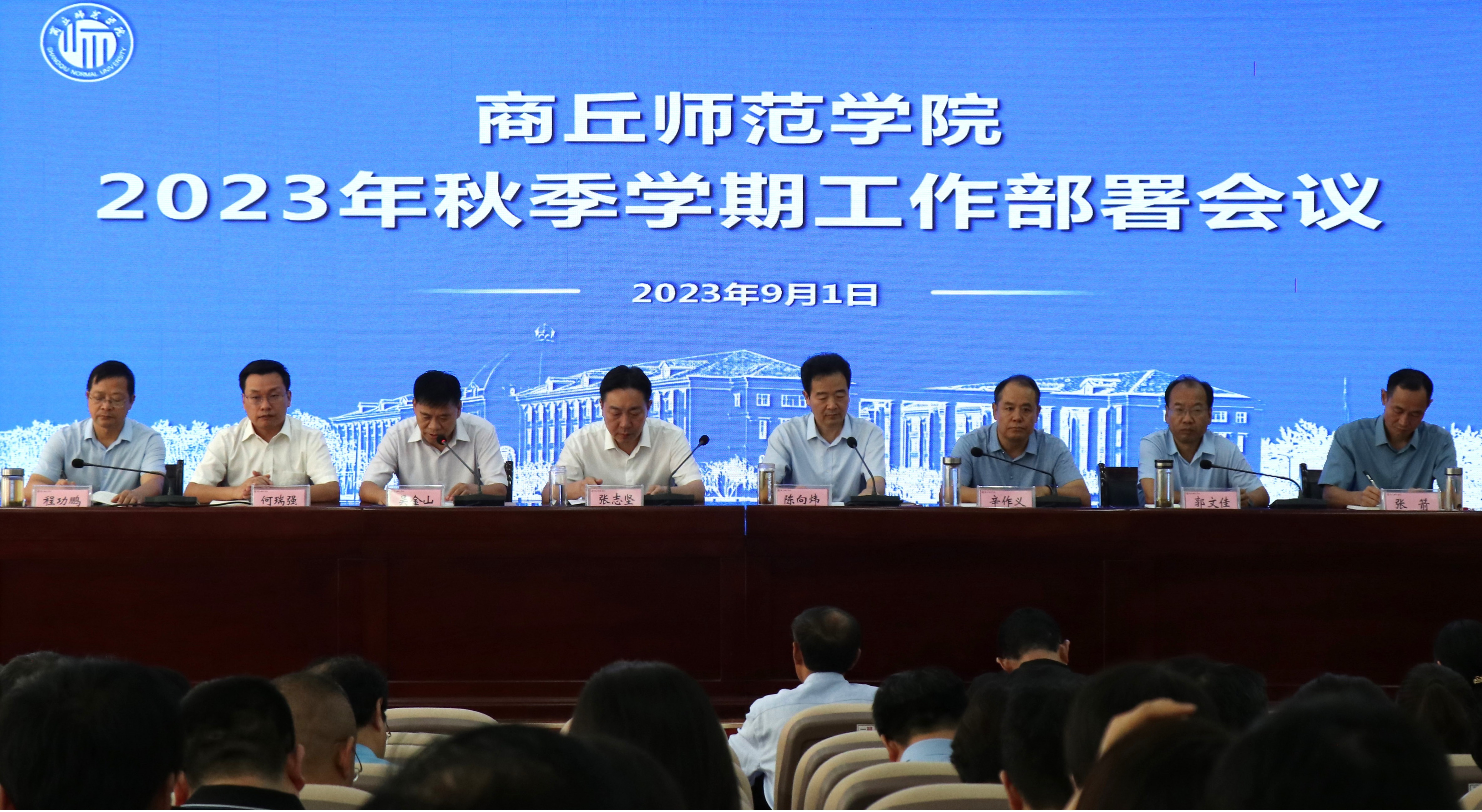 9月1日,mg4355官网召开2023年秋季学期工作部署会议,校领导张志坚、陈向炜、吴金山、辛作义、何瑞强、郭文佳、程功鹏、张箭出席会议,全体中层干部,教工党支部书记代表,团干、政治辅导员代表,高层次人才代表和机关单位干部代表参加会议。党委副书记吴金山主持会议。