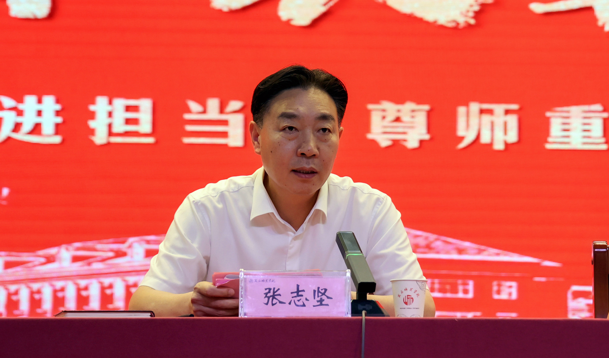 党委书记张志坚作题为《躬耕教坛担使命 强国有我绽芳华》的讲话。他指出,一年来,学校深入贯彻落实党的二十大精神,深入学习贯彻习近平总书记关于教育的重要论述和在中央政治局第五次集体学习时的重要讲话精神,在省委省政府的正确领导下,持续推进教师队伍建设,凝聚师德师风建设合力,优化教师队伍资源配置,大力引培高层次人才,深化教师职称制度改革,创新促进教师发展模式,拓宽教师职业发展通道,全力保障教师工资待遇,营造尊师重教社会氛围,在全校上下的共同努力下,学校事业发展呈现良好的发展态势。广大教职员工以实际行动诠释了mg4355电子线路人的责任担当和忠诚教育事业的奉献精神。张志坚向全校教职工提出三点希望:一是希望老师们涵养高尚师德,彰显“大情怀”,坚定理想信念,加强师德修养,做好学生的引路人,引导学生自觉成为新时代的奋斗者;二是希望老师们潜心学术研究,成就“大学问”,聚焦学术前沿,对接战略需求,深耕学术领域,坚持把论文写在大地上,着力产出高水平学术成果,做到潜心研究、教书育人、教研相长,成为学术领军人物;三是希望老师们强化使命担当,争做“大先生”,教授学生“谋事之才”,传学生“立世之德”,努力培养新的一大批德智体美劳全面发展的杰出人才。他强调,全体教职工要心怀“国之大者”“省之要者”“校之重者”,锚定学校“十四五”规划目标,围绕学校重点工作、重大任务,发挥在主题教育中形成的锐意进取、担当作为的蓬勃精气神,凝心聚力,踔厉奋发,奋力谱写高水平应用型大学建设的绚丽篇章!
