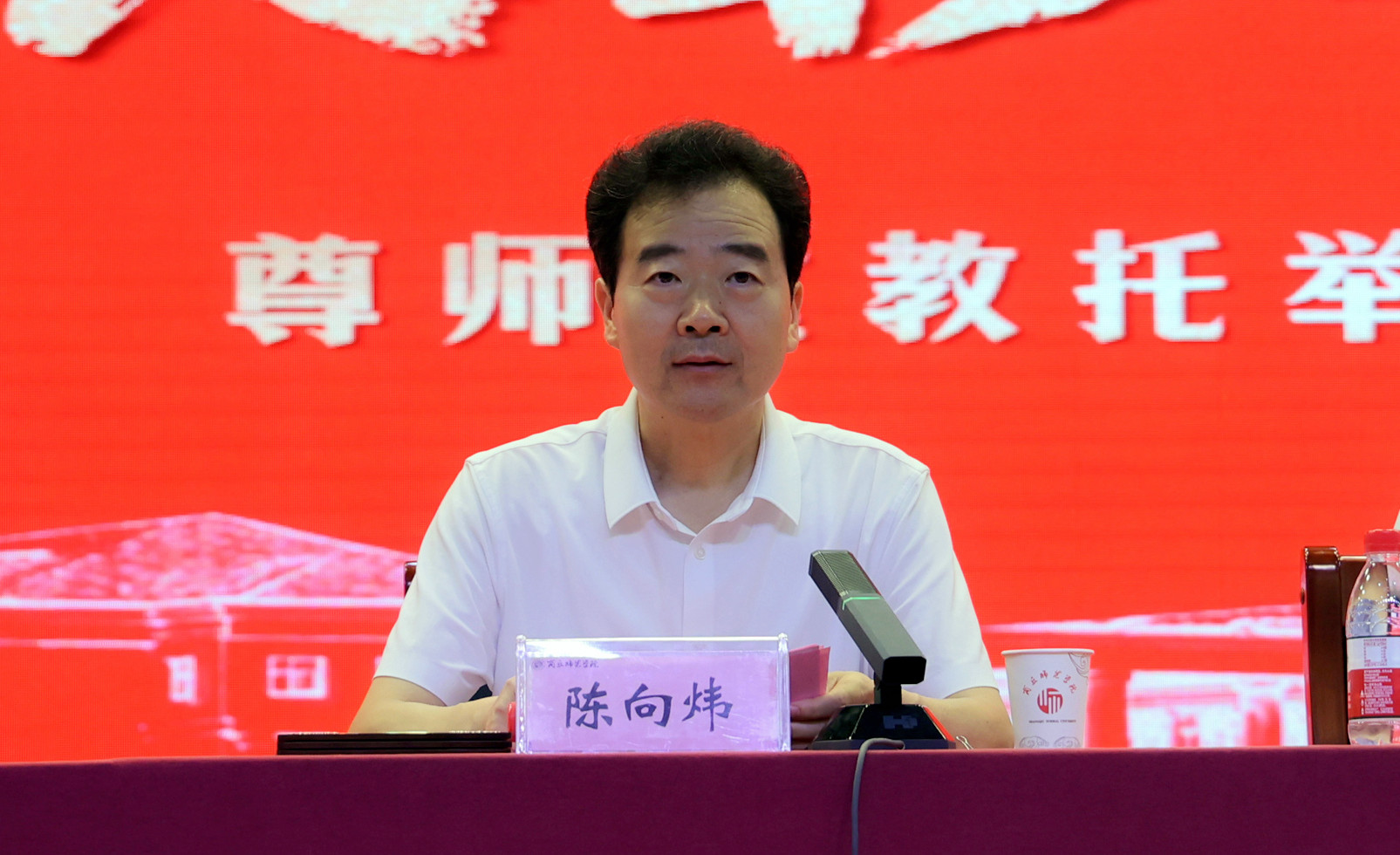 校长陈向炜在主持讲话时强调,全校教职员工要认真学习贯彻会议精神,牢固树立“躬耕教坛,强国有我”的志向与抱负,坚守教育初心,牢记育人使命,以先进为榜样,立足本职岗位,爱岗敬业,教书育人,努力争做“四有好老师”,以饱满的激情、昂扬的斗志、崭新的面貌,扎实推进学校高水平应用型大学建设,为加快教育强省建设作出新的更大贡献。