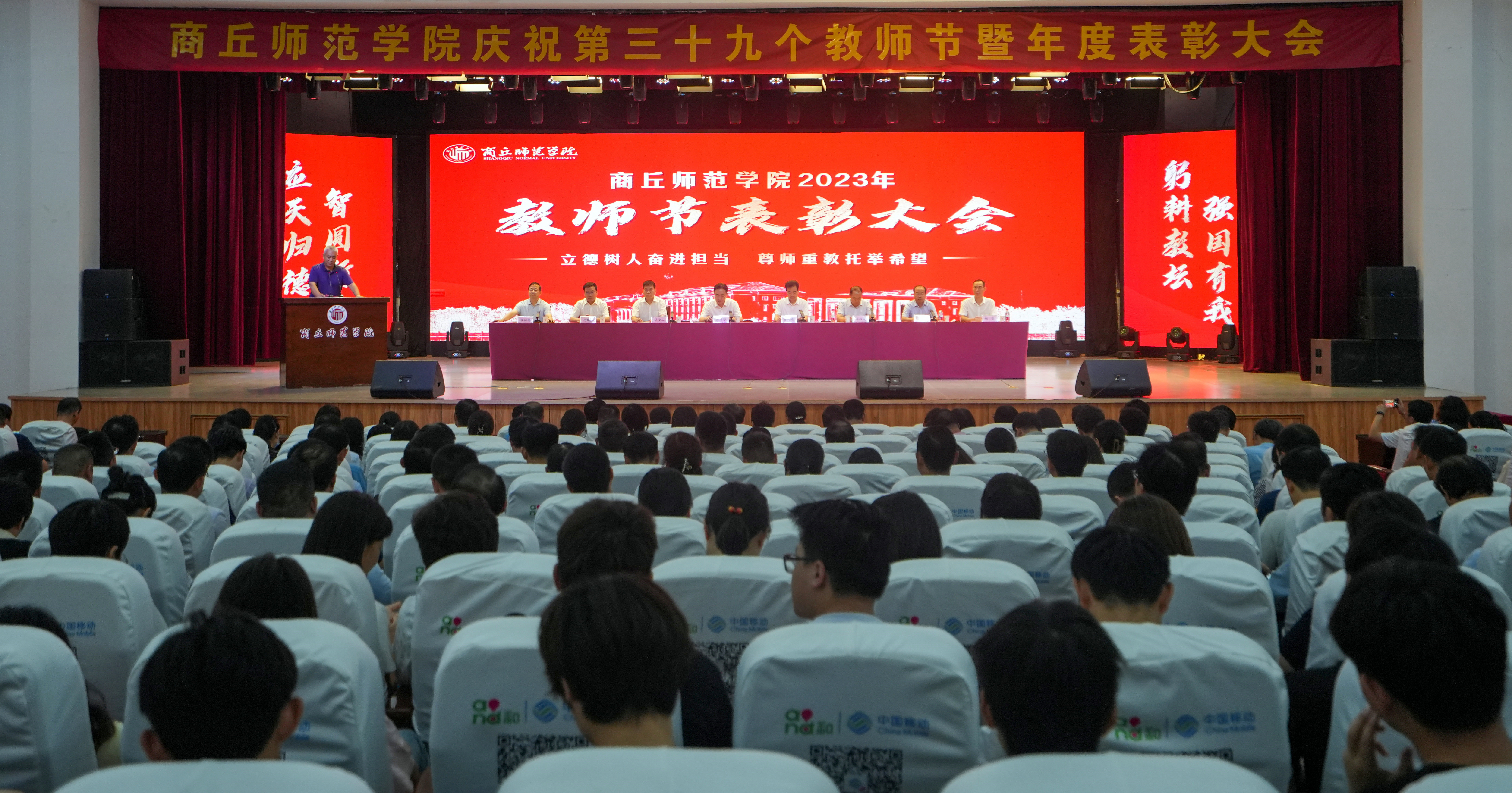 9月8日,mg4355官网在睢阳校区大礼堂召开教师节表彰大会,庆祝第39个教师节。全体校领导、校内各单位党政负责人,2022-2023学年在师德师风、教育教学、科学研究、管理服务等工作取得突出成就的教师、“从教满30年教师”和部分教师代表、学生代表共700余人参加会议。党委副书记、校长陈向炜主持会议。