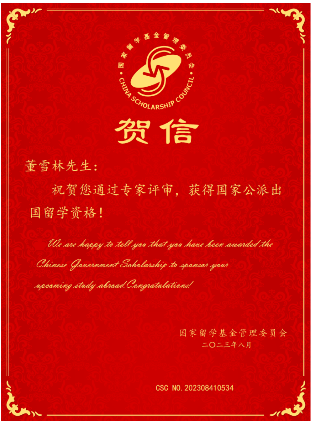 近日,根据河南省教育厅办公室转发的《2023年西部地区人才培养特别项目、地方合作项目录取通知》(教外函〔2023〕632号),mg4355官网化学化工学院董雪林、初先须、贾玫3位博士获国家留学基金委地方合作项目资助。今年mg4355官网共3名教师参与报名,全部喜获录取。