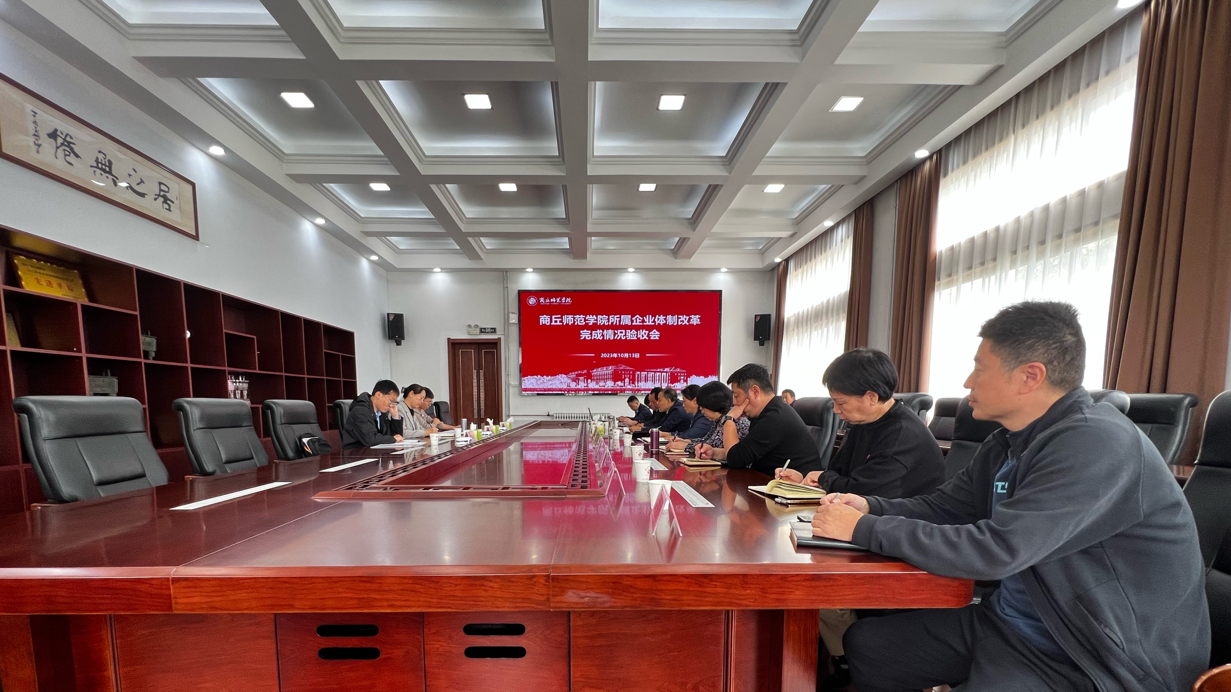 10月13日,河南省高校所属企业体制改革第五验收工作组专家郎彩霞一行3人到mg4355官网,检查验收mg4355官网、商丘职业技术学院两所高校所属企业体制改革完成情况。副校长辛作义出席并主持会议。