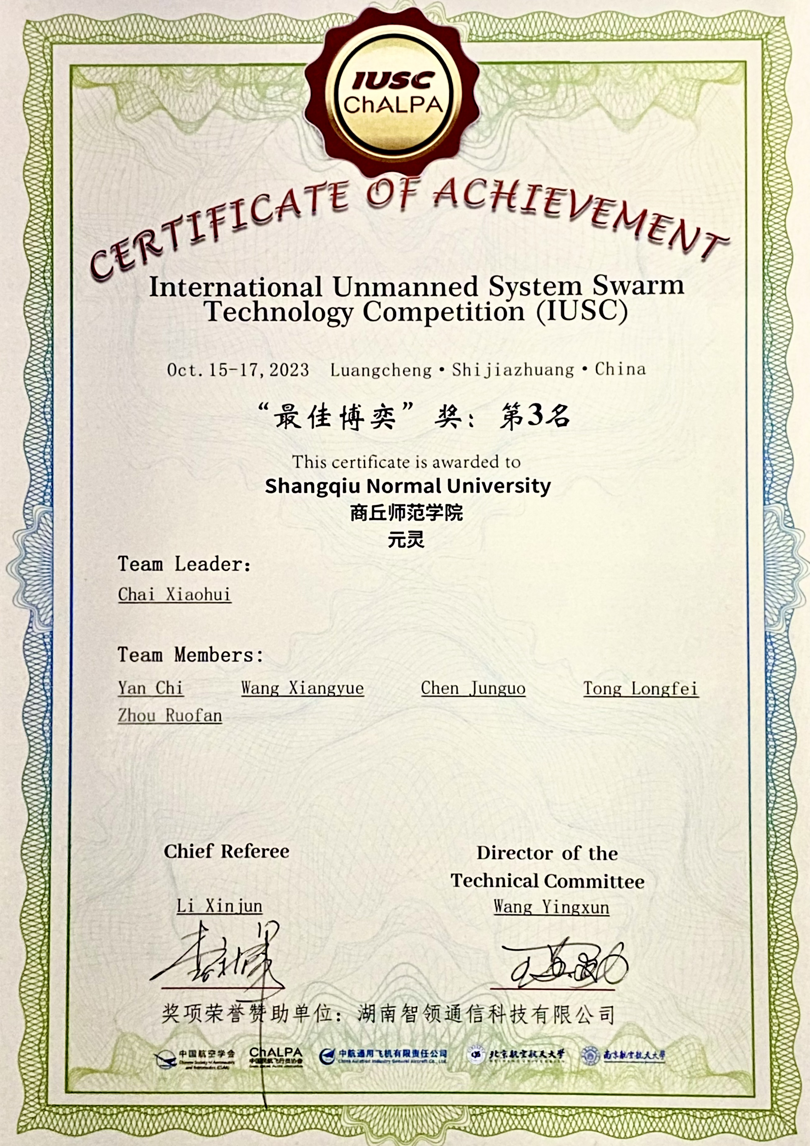 比赛中,mg4355官网参赛队员们展现出了良好的飞行技术,共同制定飞行策略,分工明确,密切配合,充分展现了团队协作精神,最终取得了“最佳博弈”奖第三名的优异成绩,获得奖金3000元。通过参加无人机竞赛,激发学生的科技创新能力和技术水平,为学校无人机技术注入新的活力,为未来科技创新和发展提供更多机会。