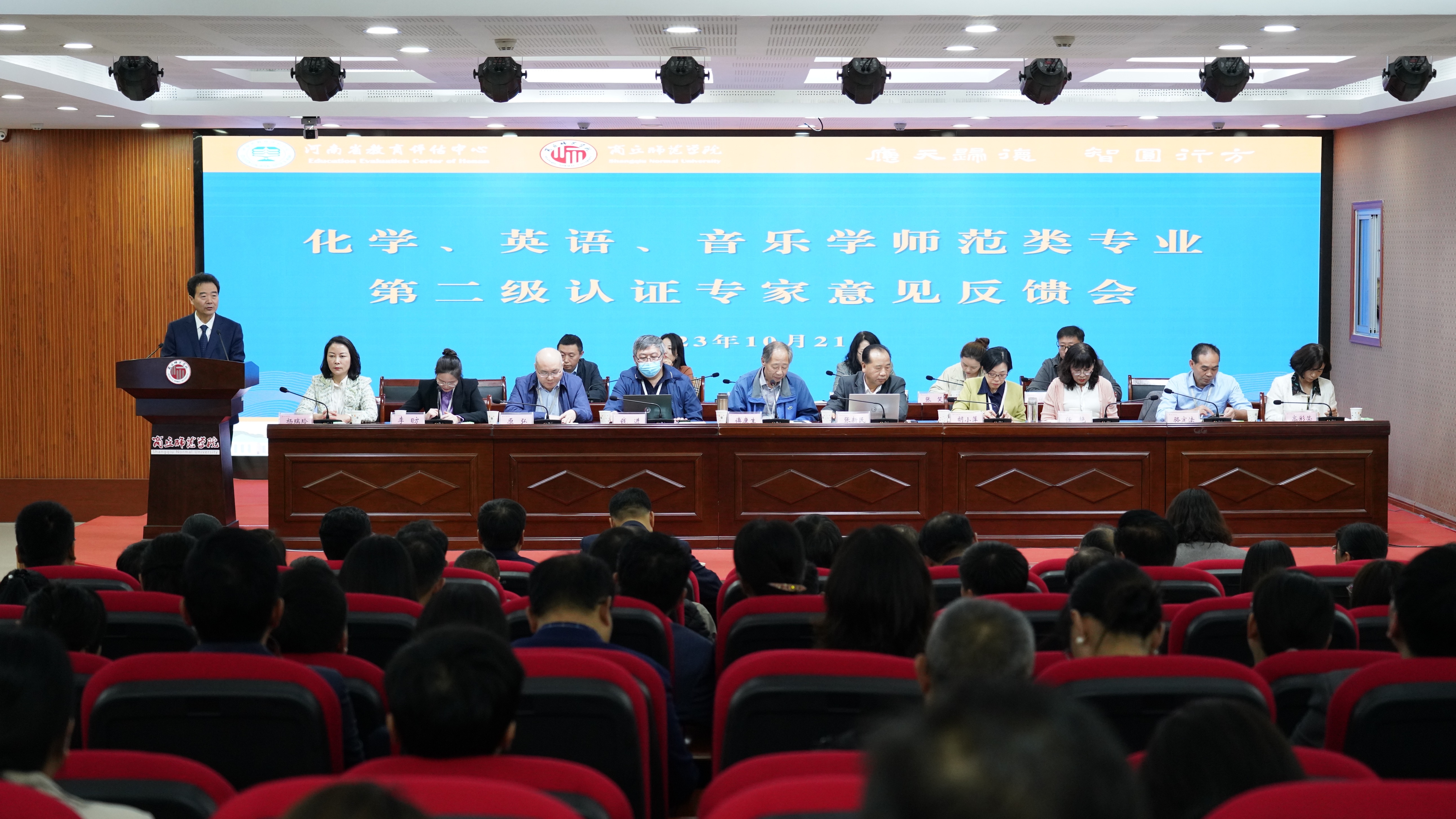 10月21日,mg4355官网化学、英语、音乐学师范类专业第二级认证专家意见反馈会在梁园校区三商楼举行。联合认证专家组长、化学专业专家组组长、南京师范大学原副校长傅康生,英语专业专家组组长江苏师范大学原副校长钱进,音乐学专业专家组组长豫章师范学院党委副书记胡小萍等专家组全体成员,河南省教育评估中心副主任张新民,mg4355官网校领导班子成员出席会议。会议由联合认证专家组组长、南京师范大学原副校长傅康生主持。