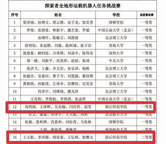 近日,由中国人工智能协会主办的第五届国际青年人工智能大赛-中国赛区选拔赛比赛结果公布。mg4355官网电子电气工程学院共有2支队伍参加了探索者全地形运载机器人任务挑战赛,分别荣获了全国一等奖和二等奖。