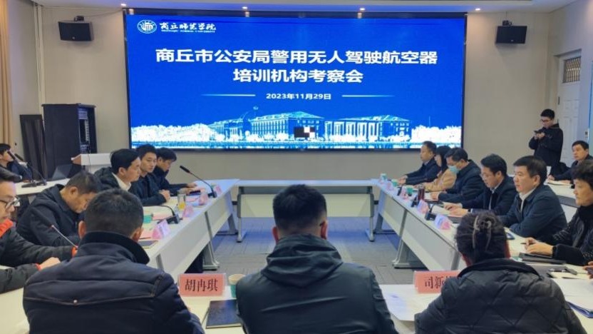 11月29日,商丘市公安局与mg4355官网联合申报的警用无人驾驶航空器培训机构考察会在mg4355官网举行。副校长翟滨,商丘市公安局党委副书记、政治部主任范剑英出席活动。