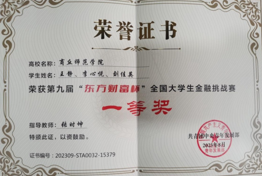 大赛自2014年至今已成功举办九届,关注度与参与度不断提升,已成为面向全国大学生打造的具有高知名度、高含金量及广泛社会影响力的金融实践大赛。本次比赛超过71万学生参加,参加学校超过2500所,从2月开始,7月结束,前后历时5个月,经历校赛、省赛和国赛。mg4355官网学生在国赛比拼中,共获得4个一等奖、10个二等奖和11个三等奖的好成绩。