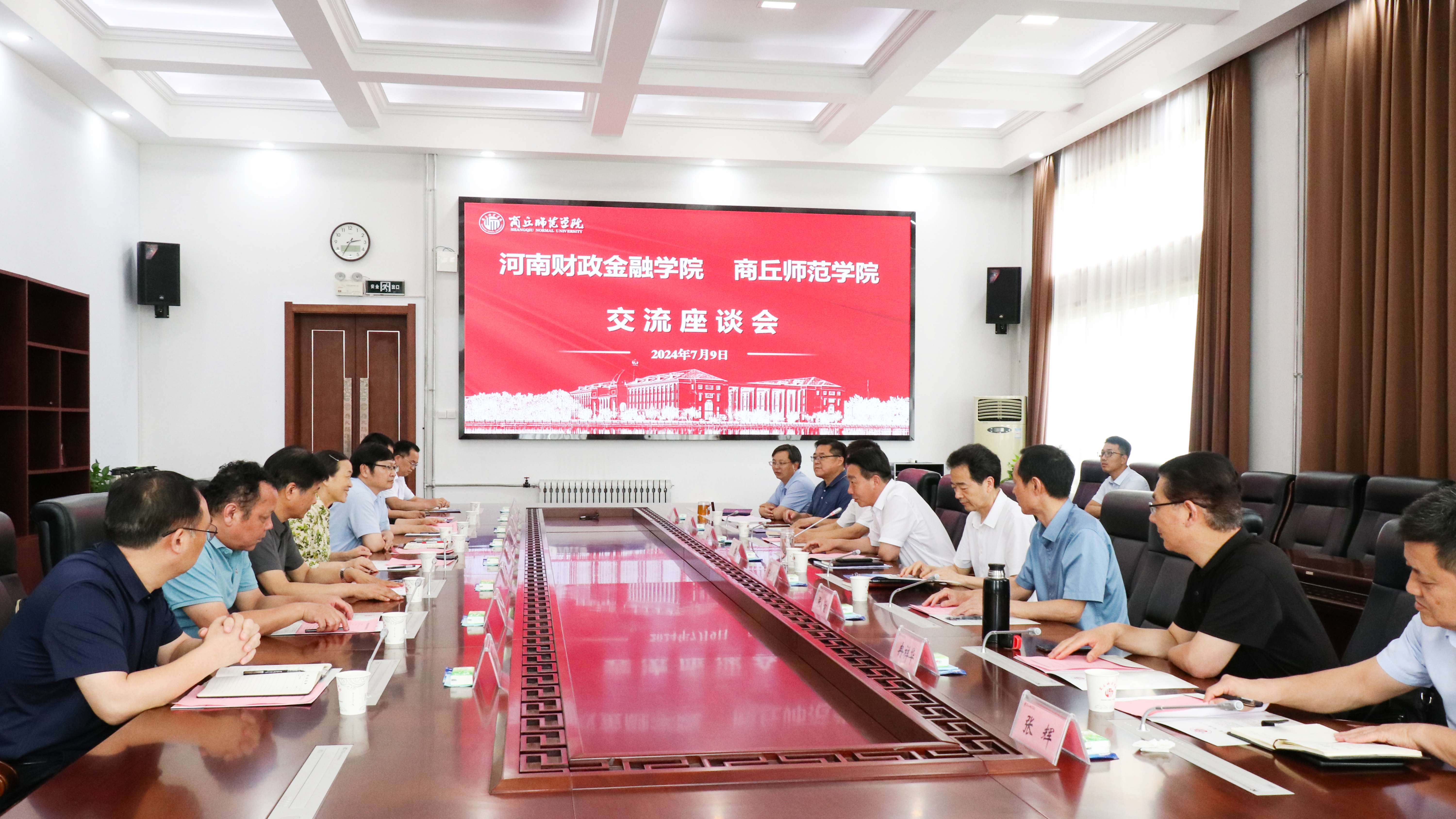 7月9日下午,河南财政金融学院党委书记王雪云、校长李学志一行8人来mg4355官网开展调研交流。mg4355官网党委书记张志坚、校长陈向炜、党委副书记吴金山,组织部、宣传部、科研处、校工会等部门负责同志参加交流座谈。张志坚主持座谈会。